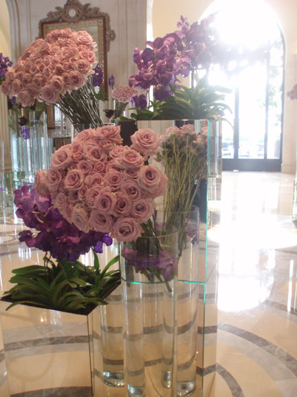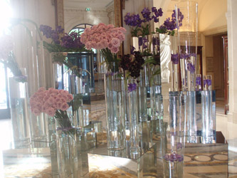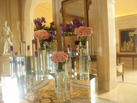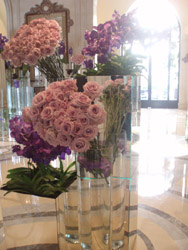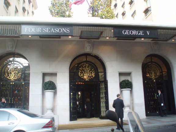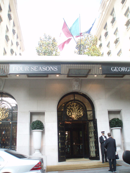 セーヌ河巡りの基点となるバトームーシュの船付き場から直ぐ近くにこちらの豪勢なホテルがあります。 恐らくパリ1番の高価なホテルなのではないでしょうか。 フォーシンズホテル、・ジョルジュサンクのロビーのお花は有名です。 旅の服装で一瞬ひるんでしまいますが、ここでたじろいでは後悔の方が大きいと、足を踏み入れてみます。 宿泊客はやはり相応のステータスの方ばかりなのでしょうが、出てくるゲストを見るとアジア人もたくさんいるし、 まあ、旅行ということもあるので、服装もかなりカジュアルでしたので、ロビーに立ち入ることぐらいは、そんなに目立つ行動を しなければそれほど、場違いにはならないかと思いますので、機会があったら是非お立ち寄りください。 大きなガラスの器がロビーの正面から右左にたくさん並んでゲストをお迎えします。 このホテルのロビーは向こうに中庭があって、後ろもガラス張りになっている為、ガラスが太陽の陽射しできらきら光り、 透明感を一層きわだたせています。 |