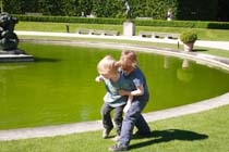| 美術館はお庭だけの入場もできます。入園料がかかる分、きちんと管理されていて清潔ですし、 人もそんなにいないのでプライベート感覚でゆったりした時間を過ごすことができます。 ガーデンからみたロダン美術館の建物です。そしてお庭の端には真ん丸い池があリかっこうの子供達の 遊び場になっています。 |
