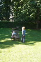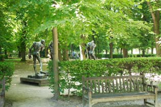 ガーデンにはロダンの作品が贅沢にも、たくさん点在しています。 首にロープで繋がれた悲しい表情の人物像ばかりなのですが、子供達にはそんなことお構いありません。 手当たりしだい、大きな手を見つけて握手をしたりぶらさがったりです。 本当に贅沢ですね。 |